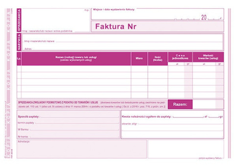 Zastosowanie: faktury i inne dokumenty wynikające z przepisów o podatku od towarów i usług