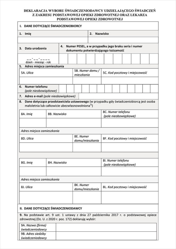Deklaracja wyboru lekarza A4/2 - Komplet 100 szt.