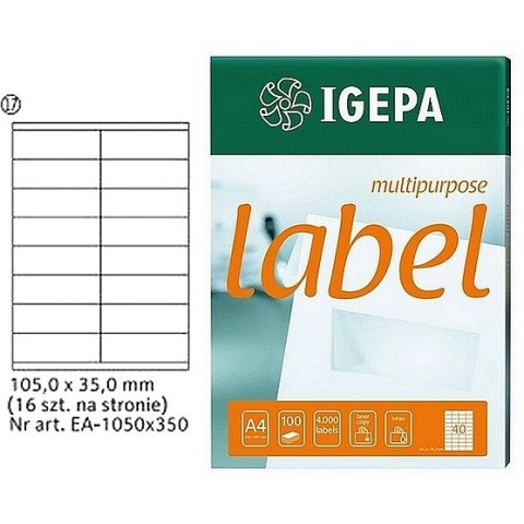 • ETYKIETY A4 IGEPA 105*35,0mm BIAŁE (100)