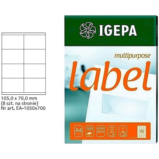 • ETYKIETY A4 IGEPA 105*70,0mm BIAŁE (100)