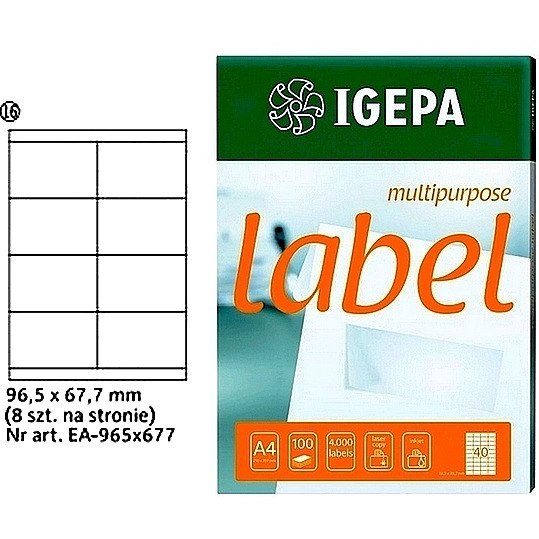 ETYKIETY A4 IGEPA 96,5*67,7mm BIAŁE (100)