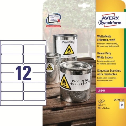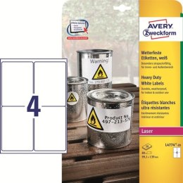 • ETYKIETY A4 AVERY HEAVY DUTY 99,1*42,3mm BIAŁE (20