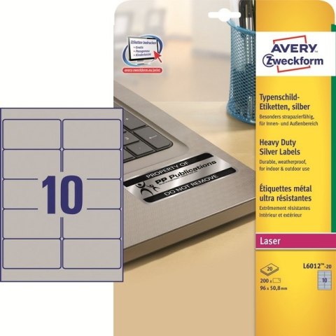 • ETYKIETY A4 AVERY HEAVY DUTY 96*50,8mm SREBRNE (20)