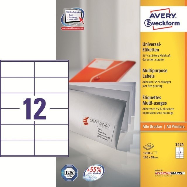* etykiety samoprzylepne do wszechstronnych zastosowań. Idealne do adresowania kopert i przesyłek pocztowych, oznaczania dokumentów, produktów i wielu innych zadań