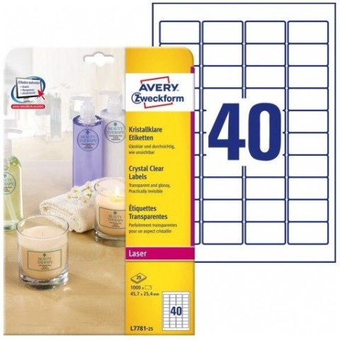 ETYKIETY AVERY A4 45.7x25.4mm PRZEZROCZYSTE (40x25)