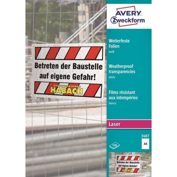 FOLIA A4 AVERY 0,13mm BIAŁA (100)