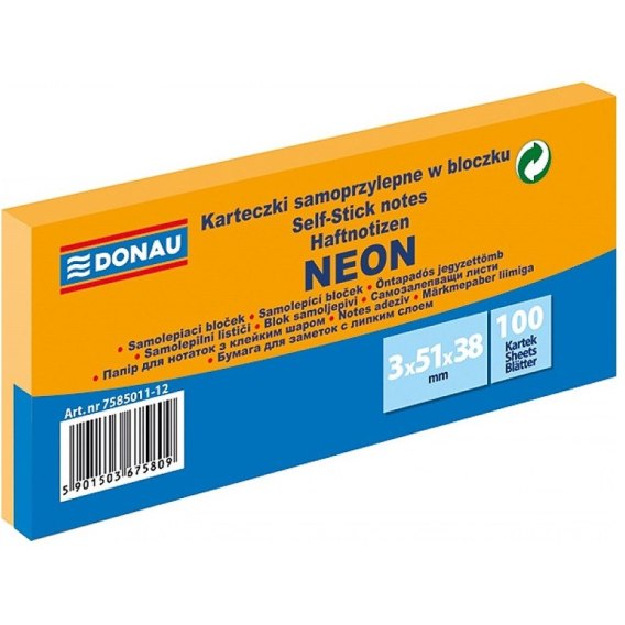 Karteczki Donau 38x51mm neon pomarańczowe (3x100)