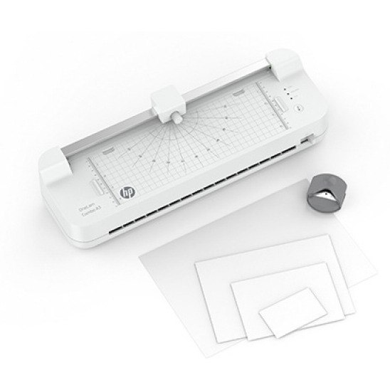 W odróżnieniu od HP OneLam 400 A3, laminator HP OneLam Combo A3 posiada zintegrowany trymer, który umożliwia cięcie dokumentów po linii prostej. Dzięki liniom wyznaczającym kąty i centymetrowej podziałce można bez wysiłku przyciąć laminowane dokumenty do pożądanego rozmiaru. Podobnie jak inne laminatory z serii HP OneLam, urządzenie to może zarówno laminować na gorąco, jak i na zimno. Przy pomocy folii laminacyjnych o grubości 75/80 i 125 mikronów można chronić przed brudem i wilgocią zdjęcia, terminarze lub ważne dokumenty od wielkości wizytówki do formatu A3.