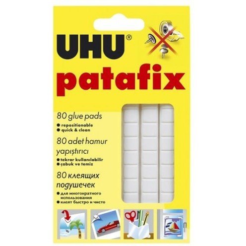 * biała masa montażowa doskonała do przytwierdzania papieru lub małych przedmiotów do powierzchni drewnianych, szklanych i plastikowych