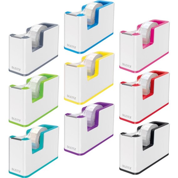 Przykuwający wzrok, wysokiej jakości stylowy podajnik taśmy klejącej, w unikalnym zestawieniu 2 kolorów, wykończony z połyskiem. Wygodna obsługa jedną ręką. Idealnie pasuje do pozostałych produktów z kolekcji Leitz WOW. Nowoczesne wzornictwo sprawia, że świetnie prezentuje się zarówno w domu, jak i w biurze.