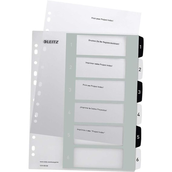 Przekładki PP Leitz Wow A4 Maxi A4 1-6 (do nadruku) biało-czarne