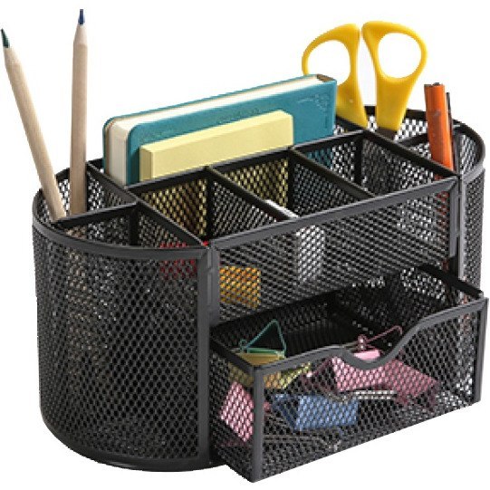 Przybornik na biurko Q-Connect z szufladką metalowy czarny