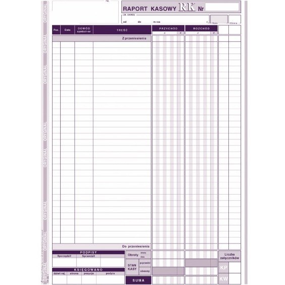 * zastosowanie: druki kasowe, księgowe i bankowe