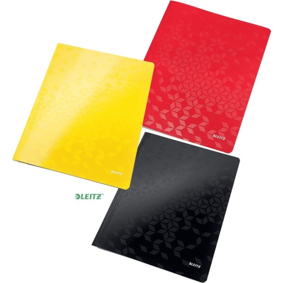 Przykuwający wzrok skoroszyt w żywych kolorach WOW. Wykończona z połyskiem wzorzysta powierzchnia podkreśla wysoką jakość i elegancję.