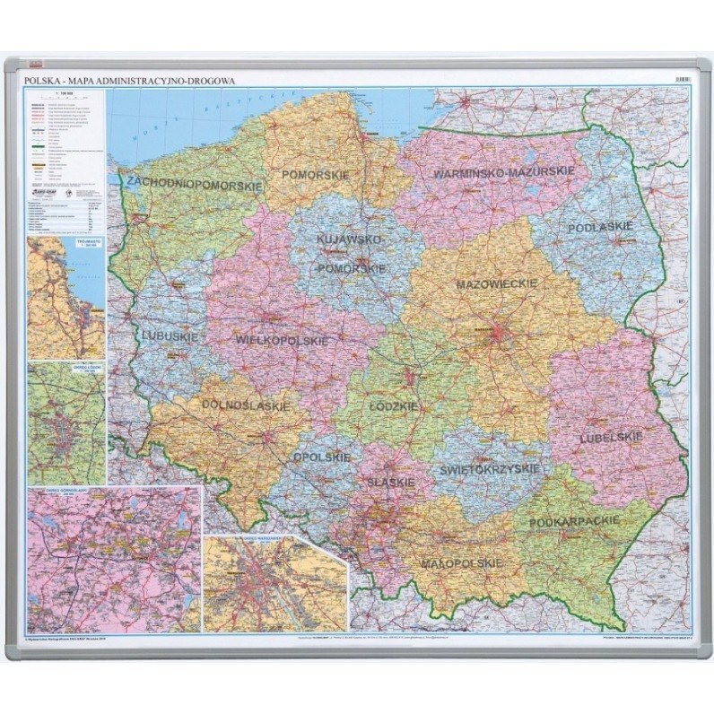* wysokiej jakości mapa ścienna Polski, na płycie miękkiej (umożliwia używanie pinezek)