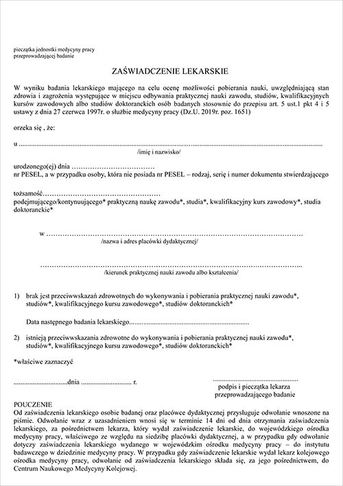 Zaświadczenie lekarskie dla uczniów, studentów A5/100